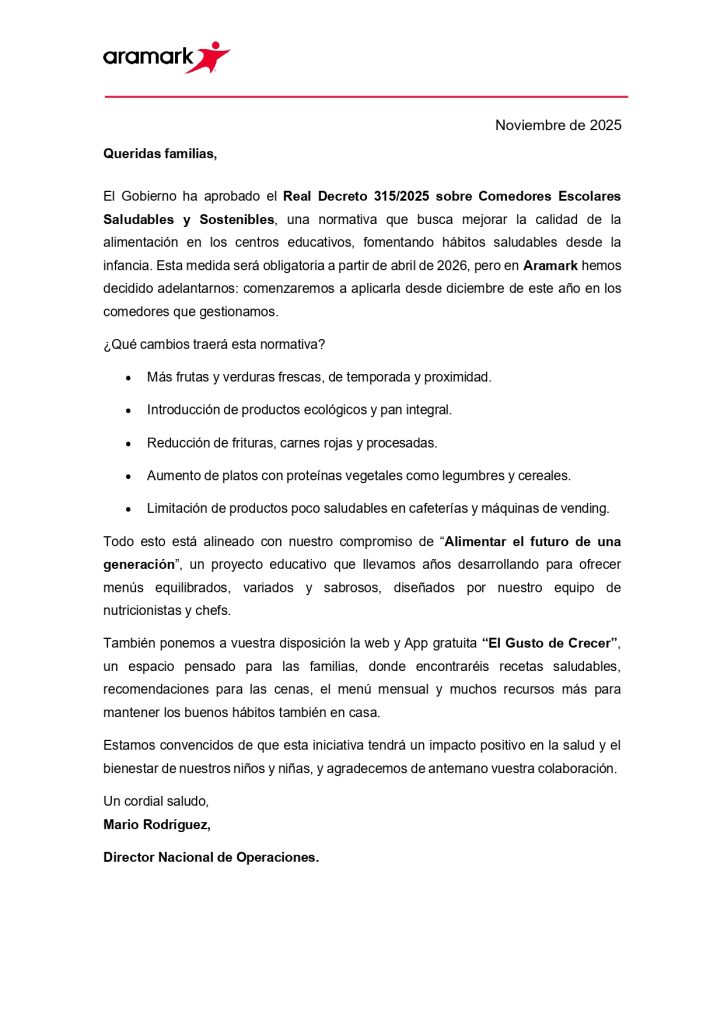 COMEDOR-CARTA DE ARAMARK FAMILIAS